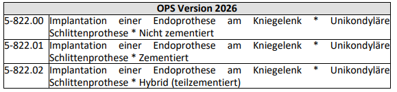 In Nummer 1 (Regelbetrieb) und Nummer 2 (Erstmalige oder erneute Erbringung einer Leistung) wird jeweils in der zweiten Zeile der dritten Spalte mit der Bezeichnung „Datentyp“ nach der Angabe „Kniegelenk-Totalendoprothesen (Knie-TEP)“ die Angabe „Unikondyläre Schlittenprothesen“ eingefügt.